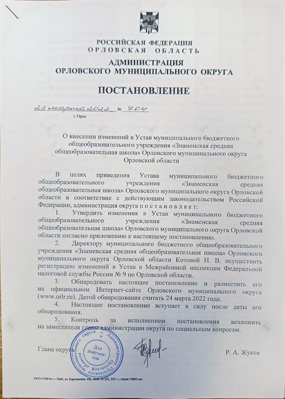 Постановление о внесении изменений в устав №2835 08.10.2025