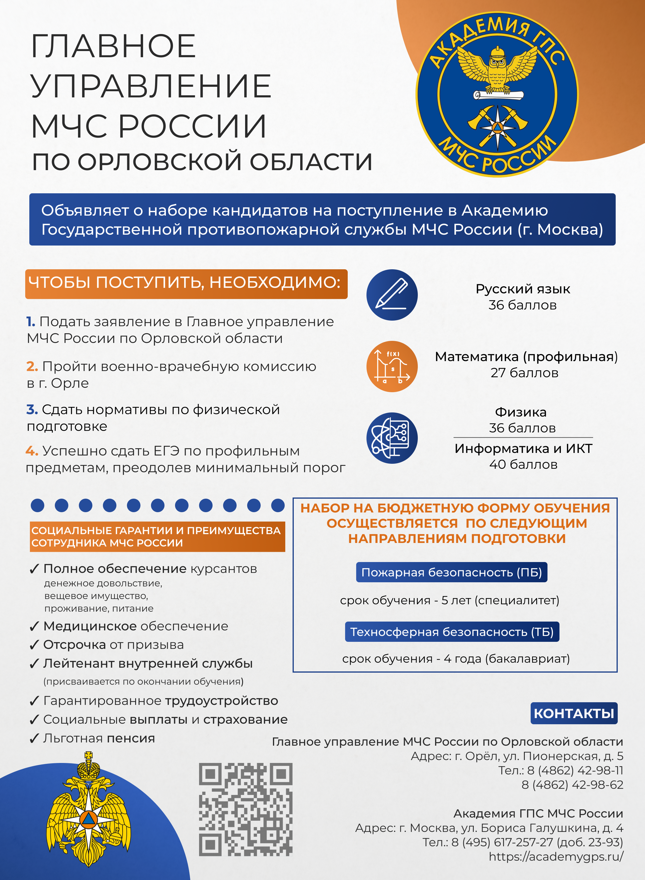 г. Орёл, ул. Пионерская, д. 5, каб. № 36 или на официальный сайт Академии ГПС МЧС России - http://academygps.ru.