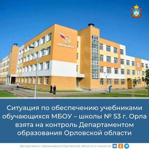 Ситуация по обеспечению учебниками обучающихся МБОУ – школы № 53 г. Орла взята на контроль Департаментом образования Орловской области