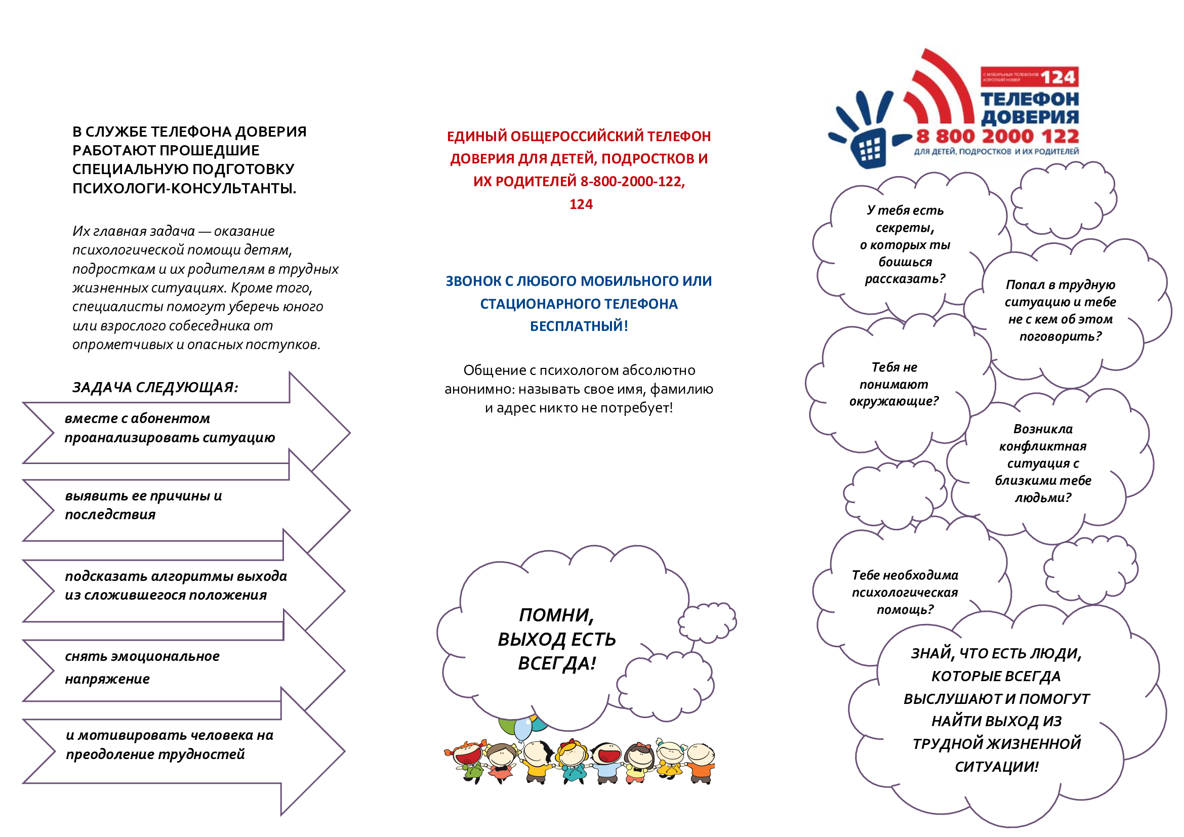 Памятка "Скажи телефону доверия "Да!";